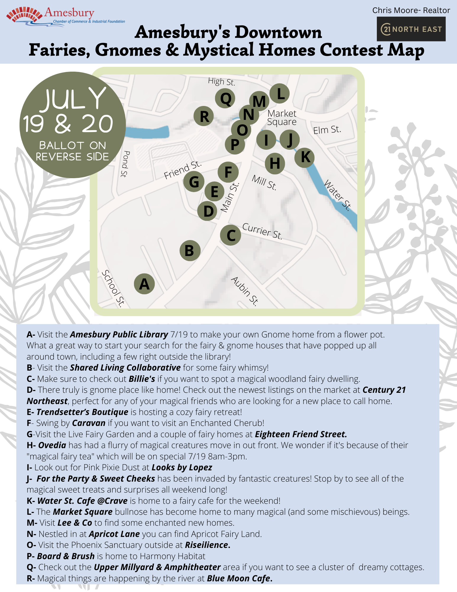 Pick up ballots/maps at the Chamber, Lee&Co, Apricot Lane, Ovedia, Caravan, Billies, 18 Friend Street, Century 21 and Riseilience. Maps/Ballots at the Chamber are located outside on the A Frame sign in an envelope or on the front door.